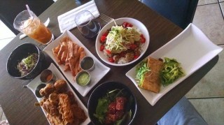 Finally got around to KUNFUSION at the new (to me) brick & mortar in Pismo Beach. Nice corner of Pismo Coast Shopping Center next door to California Fresh Market. Great ‘feel’ inside–the bustle of the kitchen is *just close enough* to give reminders to the taco-truck roots of this restaurant. The menu has a lot to absorb on it, and the waiter was very knowledgeable and patient with my plethora of questions borderlining on interrogation. We kinda went overboard on the food–I wanted to sample a broad spectrum of offerings–and when they arrived I could hear my father saying, “Your eyes are bigger than your stomach!” Let’s just say we took a lot of food home. When poke is on a menu of a place even remotely Asian, I am forced to order it–rare as it is around here. Tuna was of reasonably high quality, and the dish itself was geared far more toward showing off the pure tuna than classic, heavily sauced Hawaiian poke. Lo Fu was a meal of on its own, in fact: two people could easily split it, hearty as it is. Not my favorite–ordered more as a curiosity since tempeh is so rare on menus around here. Not being a huge fan of tempura, I found myself eating far more the the Tempura Veggies off my girlfriend’s plate than usual as they were very nicely done and the batter perfect. And another one: Sweet Potato Fries. Ordered then strictly because indicated as a house specialty and have been disappointed so many times with soggy, lifeless offerings. These are cut far thicker than usual and somehow, surprisingly, still managed to be of a better texture than several in recent memory. Which brings us to the Pork Belly Taco. Why on EARTH–me being such an authentic taco guru–would I order something of this nature?!? Have you ever had chicharron tacos? They come in two versions: Too much fat and Not enough fat. This was neither: A perfect delectable strip nestled in seaweed and a shell made of something resembling wonton but with a fancier name which has escaped me. Very nice, succinct wine selection–some of the usual suspects and a few out-of-the-ordinary bottles–and a couple extra points for a GREAT version of Thai Iced Tea. Stemless glasses lose a couple points, but hey: I get what restys like this have to do to make wine-service work for them. No, actually, I don’t get it. I changed my mind. There’s no excuse for stemless. Ever. Now that I have sampled a variety from various corners of the menu and felt out what this wonderful little place has to offer, my next visit I will be able to limit myself. Maybe. Doubtful. It is a really great place and I highly recommend trying it. The fun menu reflects the creativity of the chef and a totally out-of-the-box approach to dining for this area.