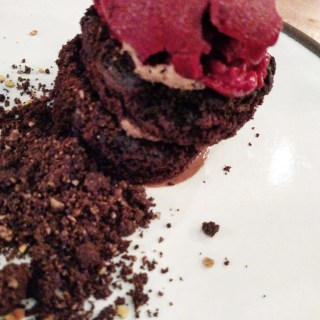 While we are on the subject of acidity, another small note of a resty getting it right: Room temperature, still water on every table for self service. No ice, no lemon, no nothing. Just water–when you want it–no bus-boy drizzling condensation through your conversation to constantly clunk your glasses to the rim. Another interesting bottle of wine was selected off the list–a Foradori Teroldego–RIDICULOUS good stuff, funky and delicious: bright cherry and rigid minerality.