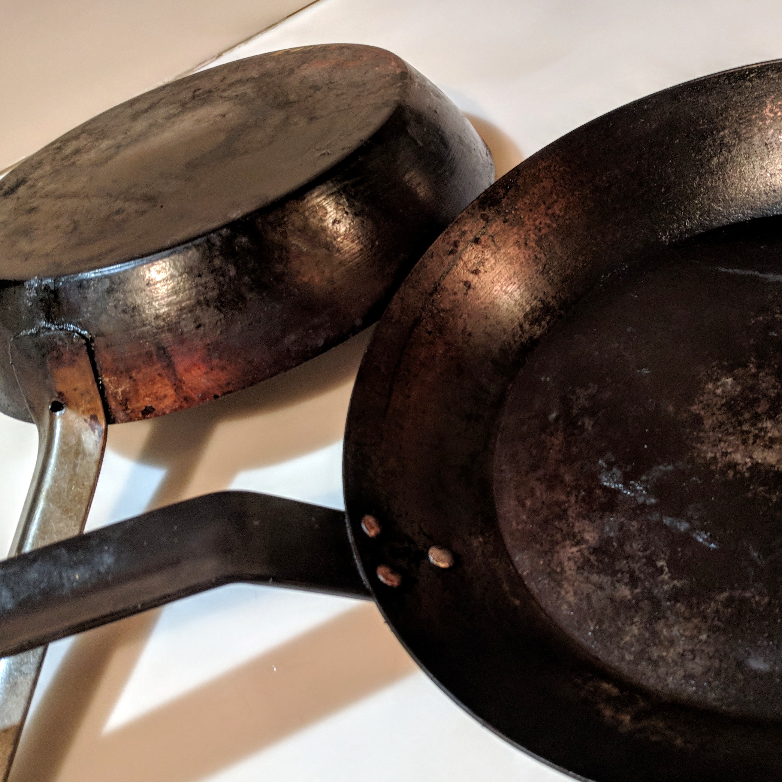 CARBON STEEL FRY PAN Love it or hate it, everybody’s got Cast Iron, it lasts forever, and has undergone surges and wanes in trendiness over the past 5 decades. If I read another ‘Care and Feeding of your Cast Iron’ article, I will have a coronary. But do you have carbon-steel pans? These BOH workhorses are just another version of almost the same material just treated a little differently at the mill and stamped out instead of cast. The rust is still there and the beautiful patina is still there, just without the porosity of cast iron. These are so fun to play with! They get hot fast, cool down fast, and after only a couple uses, wipe clean with a paper towel. Available at any restaurant-supply house, Smart & Final and some versions at Mexican mercados, buy the thickest steel you can find. The supply houses will generally have the thicker versions, Smart & Final’s offering is a bit thin. The Mexican versions are usually oval and lower-sided–sometimes with two handles. I have all three, NONE of them cost over 10 bucks, and use them CONSTANTLY. They season INSTANTLY, are light weight and almost *disposable* in value. A serious cook will always appreciate another, and individuals who have not been introduced to this pan will find them reaching for it over and over.