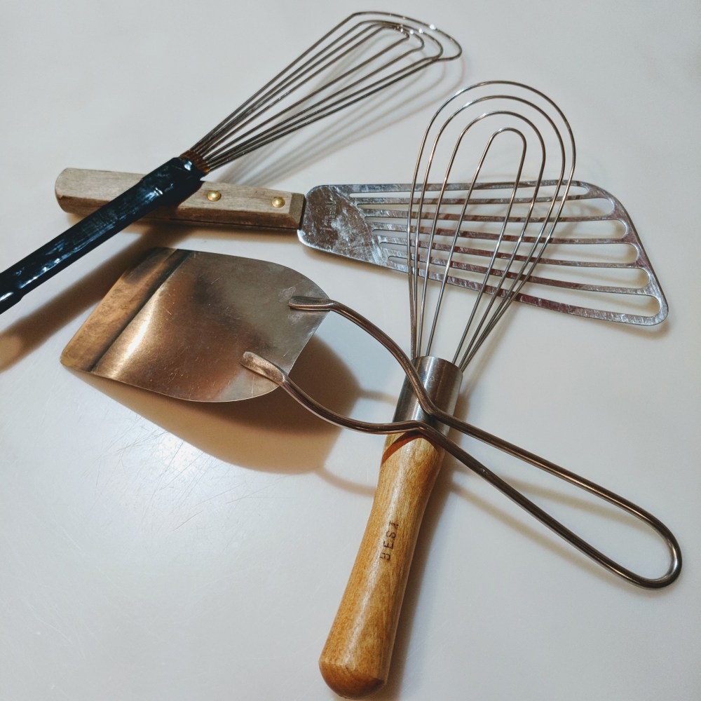 FISH SPATULA – FLAT WHISK – COOKIE SPATULA I’m not saying none of us have one, but something I often can’t find in people’s kitchens is a utensil from this *flat* category. I use all three CONSTANTLY, and any of these would make a great stocking stuffer for your cook. I only own one brand of whisk: BEST. Fish spatulas come in many styles, but avoid the thick/inflexible ones. (The Lamson-Sharp one is just dumb). I also own a couple made with wires, which blends the line between flat-whisk and fish-spatula terribly. The cookie spatula typically takes a little searching. A micro-thin, super-flexible blade goes under anything, gently. I couldn’t live without it.