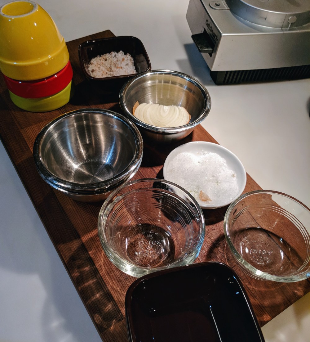 TINY BOWLS Haha we all complain about how many small bowls we have, but never have enough. That half-onion goes in the SS one, the half- lemons and garlic cloves in the ceramic ones, the glass ones become salt-wells and clarified butter servers. While mise en place for me typically becomes a series of piles on the cutting board, often tiny bowls come to the rescue.