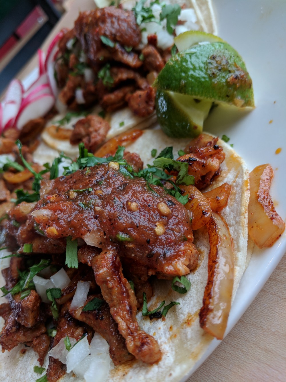 RESTAURANTE EL OAXAQUENA in Salinas added at ♦♦♦ These are very interesting tacos, with a little shmear of beans inside. Meat awesome; Sauce awesome; Tortilla awesome; Location awesome; Personality awesome. I mean–how do you beat this?