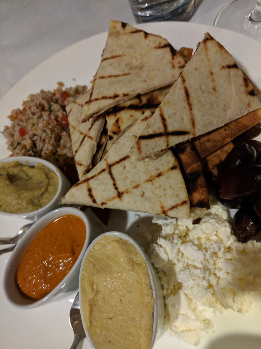 The Mediterranean Sampler was not merely hummus and pita, but baba ganoush, feta, tabbouleh and olives. The duck confit strudel with arugula and cherry sauce was not only a sight to behold but nobody could keep their forks out of it. Same went for the Maple Leaf Duck Duo, packed with breast and thigh meat, kale and couscous, in more of the flaky crust but with a cardamom sauce.