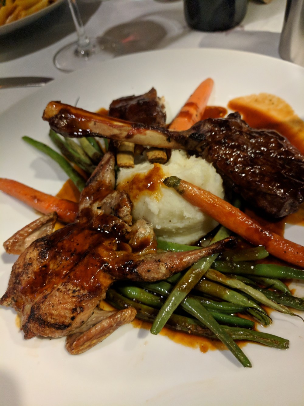 Roasted Quail, Pan-seared Black Cod with bok choy, Seafood and sausage in Penne, more Duck, Lamb lollipops, Stuffed chicken and game, endless selections of consterning decisions all presented in perfect timing and order in easily THE BEST SERVICE in SLO County only a few other dining destinations are capable of. I was so impressed with–so gleeful at how perfect it was, so excited there ARE still restaurants capable of the sort of service which gets perfect scores from me. It had been SO long. Perfect timing. Perfect hovering. Perfect order. Perfect wine service. No chatter, no strangers, no hesitation, no conversational or water-awkwardness–just perfect service. I know this is not high on most people’s lists around here–WHY DO I SAY THAT??? BECAUSE: IF IT WERE, 95% of the restaurants in SLO county would be SHUT DOWN if people stood up and DEMANDED real service–the kind of service that is taken for granted in SF or LA or any other major town. I know the kind of names I will get called for posting a rant like this but seriously, people: the kind of service you all put up with from restaurants around here makes me weep. From places which are named TOP RESTAURANT year after year after year. Fortunately, places like FARMSTEAD KITCHEN still think service is a priority.