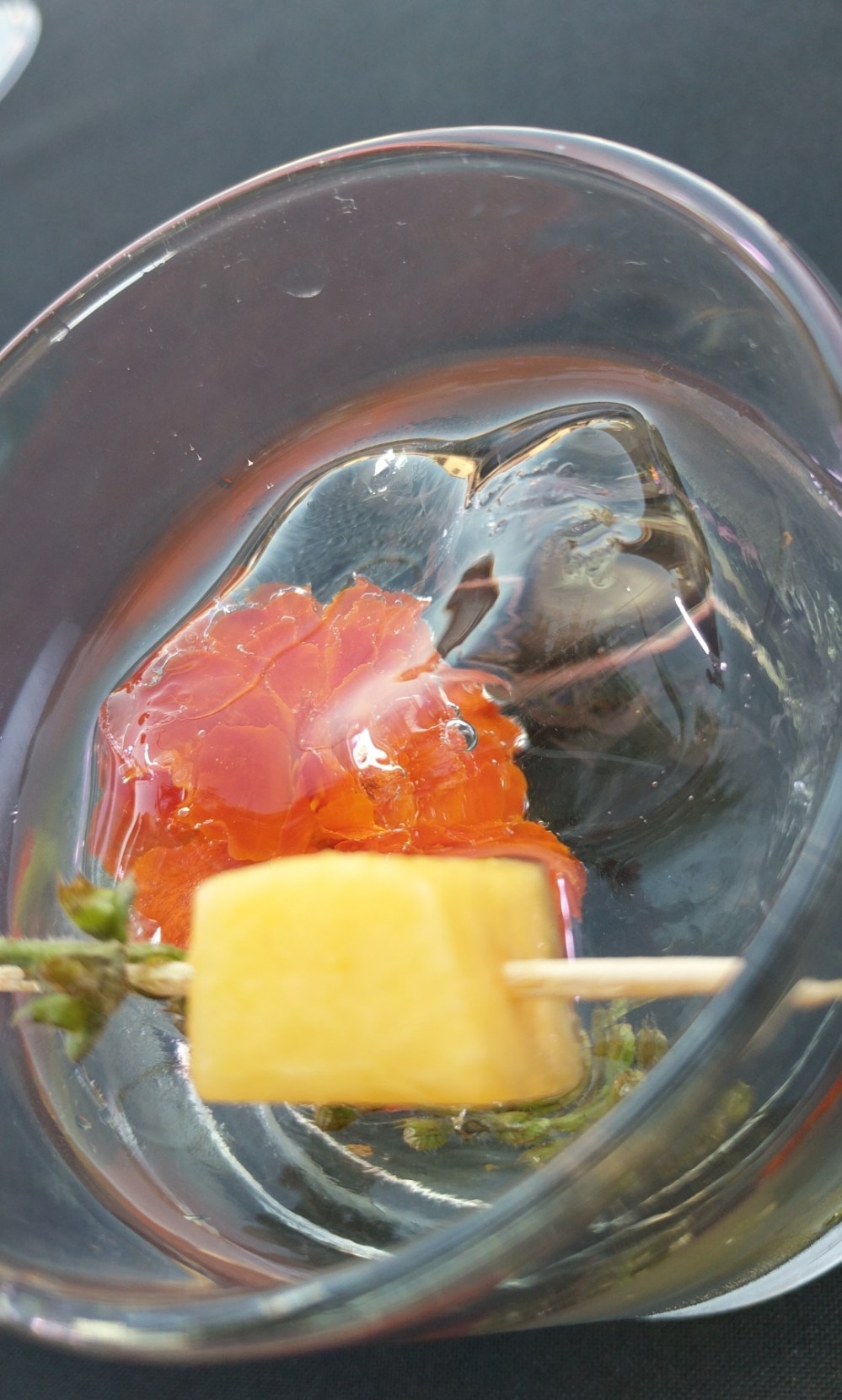 Prettiest garnish: Craft Paso’s freaking marigold inside an ice cube