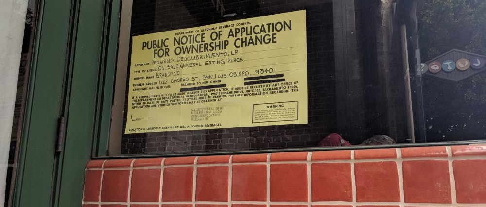 The curs-ed corner location on Higuera in SLO most recently occupied by Spencer Makenzie’s has a dumpster parked and sign is down.