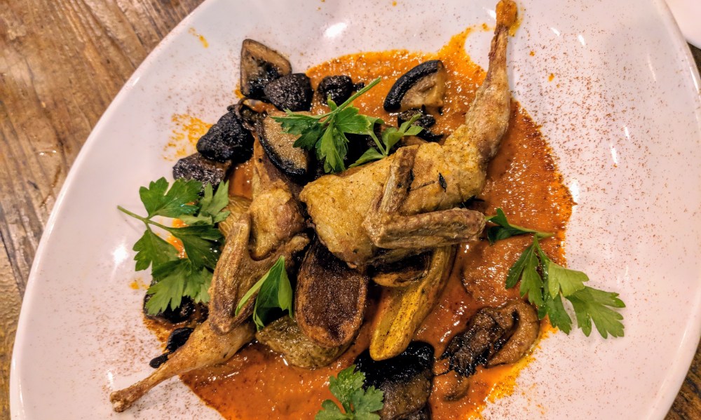 Hey, I finally got into SCONOS in Arroyo Grande. That didn’t go *quite* as well as above, but was interesting. It’s a weird sophomore feeling inside, like a second album the critics really want to like, and everybody worked really hard on, and is technically sound, but lacking any magic. A part 2 movie with vaguely familiar characters and re-worked themes but soul-less. Lovely meatballs served sans pasta in a plate-licking ragu. A very well-dressed (if you know me, “well-dressed” means minimal acid) citrus-themed salad with roasted quinoa crunch. Teensy little agnolotti’s stuffed with goodness and surrounded in an English pea bath so fresh you can literally taste the garden. The dryest, most blandest quail I have ever had in a smoked paprika and mushroom presentation. An embarrassing winelist–with over half the bottles not available. Odd closures and abbreviated hours which confound with their associated dramatic explanations. I look forward to trying this place after the training wheels are off.