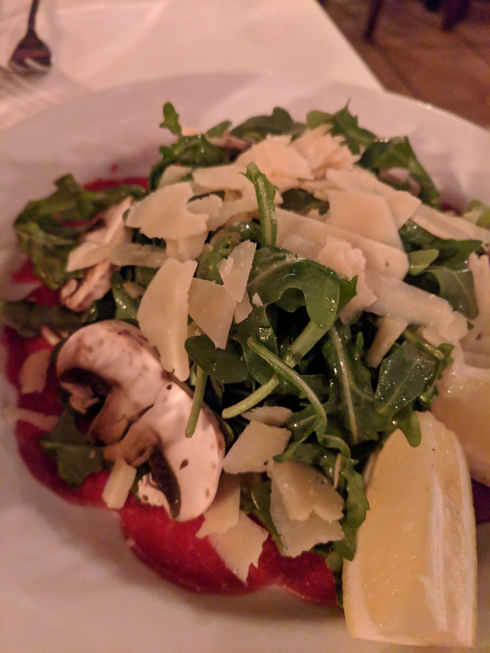 Speaking of being late to the game, I ate at MAMA’S MEATBALL for the FIRST TIME!!! What have they been there, 10 years? Despite the name–which is what kept me away for so long–the food is almost on par with some of the better-known, white-tablecloth, pinkies-out Italian joints in town. Curt winelist with cheap Italian quaffables and Barolo bling book-ending a core of boring local usuals. Carpaccio is of course the litmus by which all Italian joints are measured, and this was a decent affair, really good meat, great cheese, appropriate capers, and then they kinda lost me with a mountain of HEAVILY DRESSED arugula and mushroom slices??? For entrees, went for the upper end of regional favorites this visit. The osso buco on saffron risotto was OK. The braciole was about the way I make it at home–kinda tough, kinda bland, but this version had too much WAY too spicy sauce to really allow the beauty of this dish be displayed. Excellent service and a great atmosphere, I have decided to go back–but this time I’m going to drink cheap Montepulciano and order off the bottom end of the menu. Remember in The Wedding Singer when Adam Sandler gives the voice lessons? Had a flashback to that scene when I saw you can buy 1 meatball for $5!