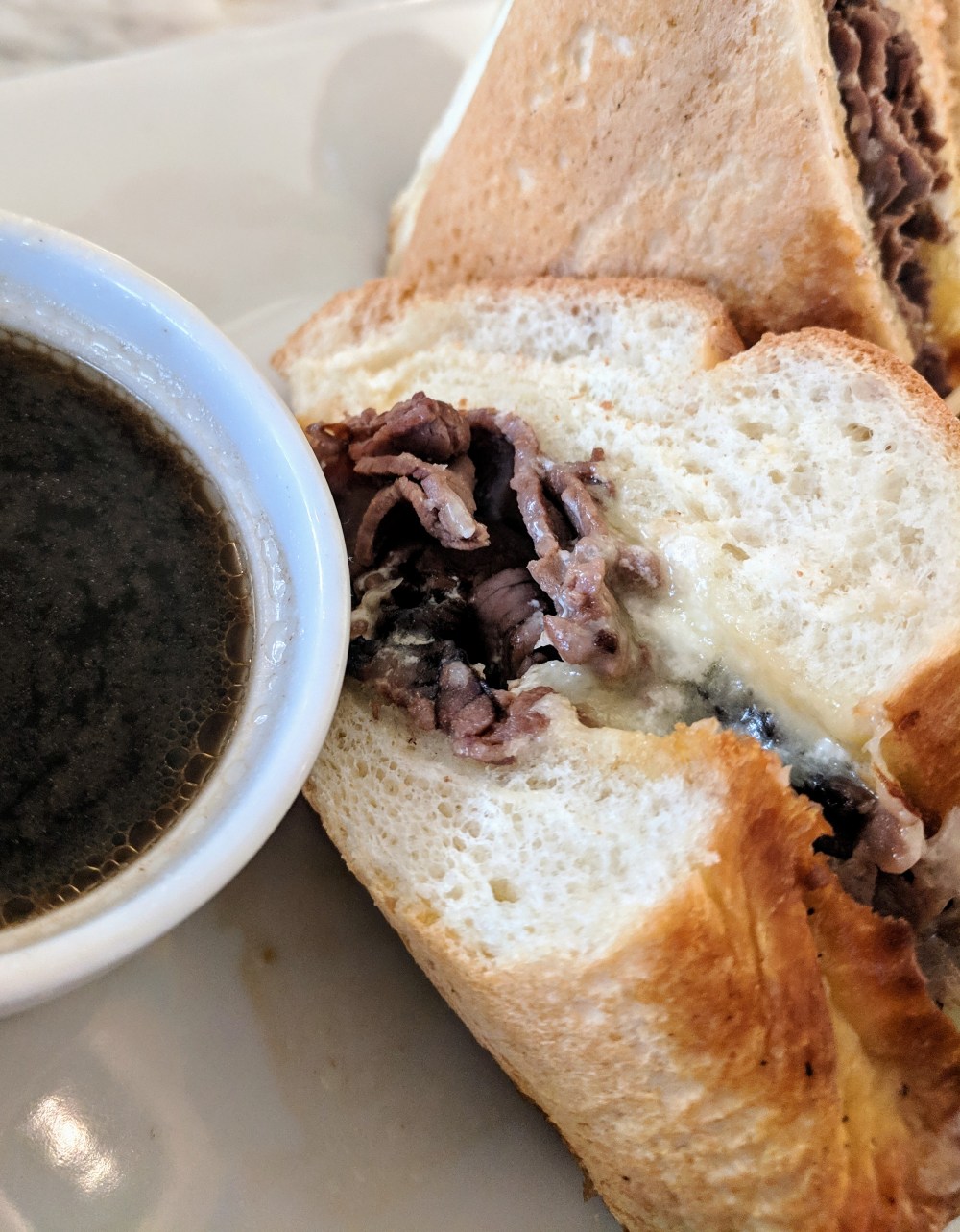 Ok one more: because we’re talking about things I never order. I hate “French Dip”. There I said it. Not a huge sandwich person anyway, but when I DO order a sandwich, I don’t like hot sandwiches, and I like stuff in them. Vegetables, condiments, pickles–that kind of stuff. I don’t like dry bread & meat–no matter how much au jus you bring. This is the reason I don’t eat BBQ sandwiches either. But the other day I stepped off my comfort-rug and ordered the French Dip at BLUE MOON OVER AVILA. OMG. First of all, the bread’s a perfect flaky crusty puffy light dream–as you should expect from a French bistro. But that’s not really it. Sure, it comes with au jus, but I don’t think I dipped it once. It would be a crime to drown this thing. Inside are folds of the wettest, best beef loin (I’m guessin sous vide), white cheddar, grilled onions and a drizzle of horseradish cream fraiche. This is the first French Dip I have ever liked in my life.