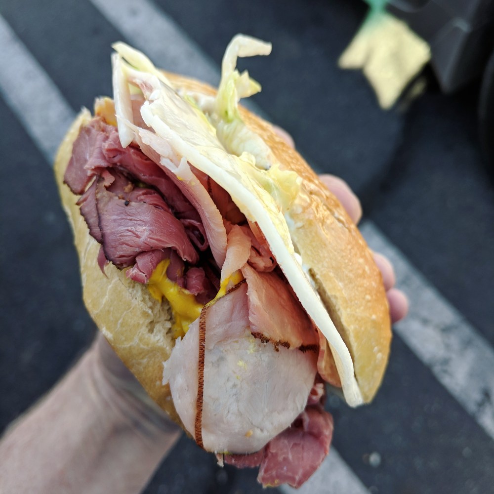 I ate at MR. PICKLES last week. I don’t eat at too many chain deli’s. I have loved the Subway “Cold Cut Combo” for decades and never gave this small grouping of restaurants much creedence with their silly name and mascot. Boy was I wrong. This is expertly-designed stuff in a hassle-free environment. The thing I hate about Subway is how you have to repeat over and over and over what you want on your sandwich, even though “everything” seems quite a simple word. At Mr. Pickles, I said, “Everything” ONCE and boom: perfect sandwich appeared, with obviously much-higher-quality meat and bread. I might never go underground again. Good job! There’s even a surprise free cookie in the bottom of the bag!