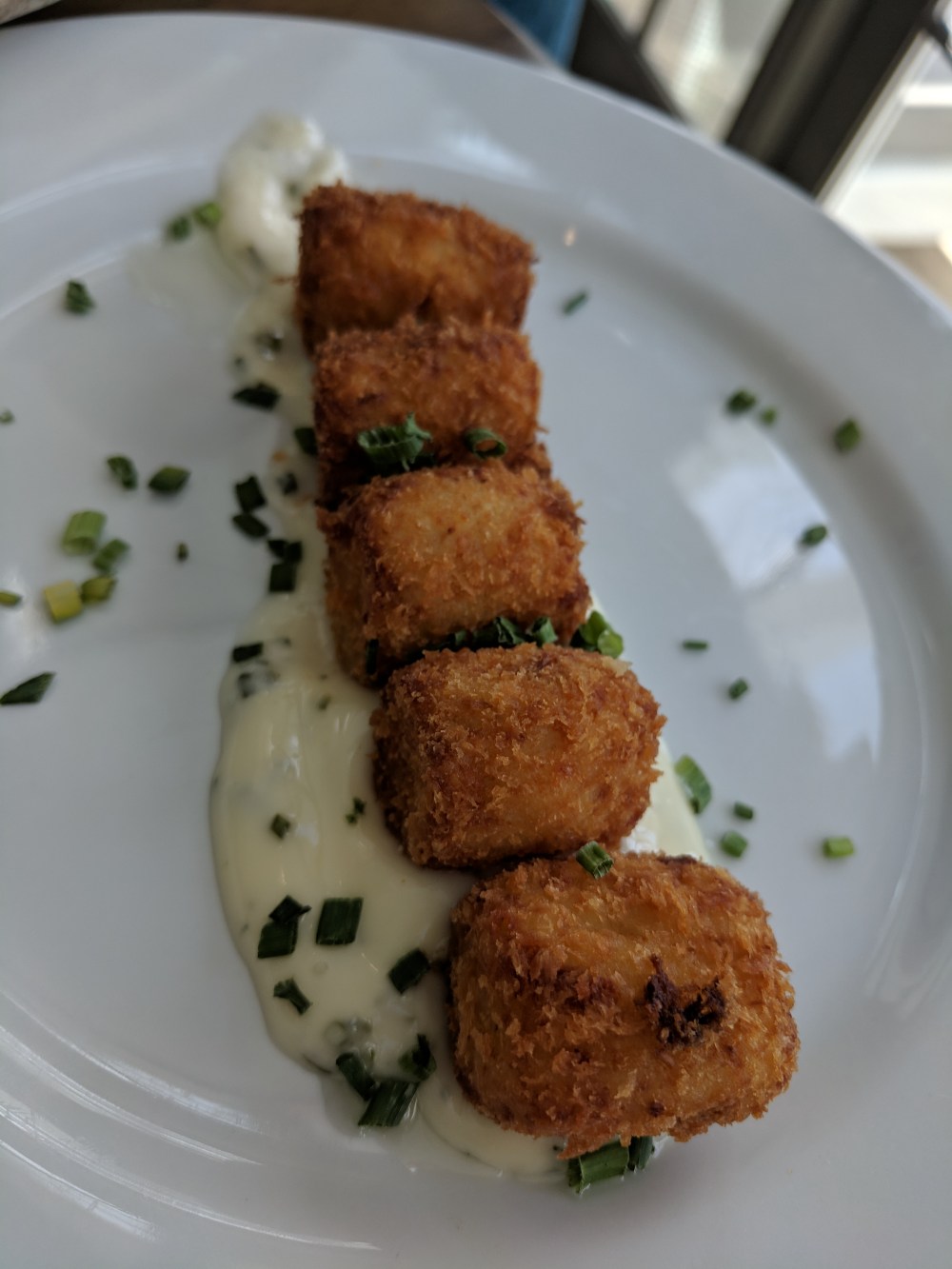 Speaking of bad experiences, anyone been to BLONDE lately? I went shortly after they opened and mentioned on these pages it was lackluster, if sufficient. I recall sticking to the basics of the dinner menu that time–meat & potatoes–and went away bored, but not repulsed. I returned yesterday for a late-afternoon cruise through the center of their all-very-good-and-high-brow-sounding menu after scanning their HORRIBLE winelist. A glass of J bubbles was literally the ONLY thing I can drink on that list. I love J. The lobby/dining room is quite majestic, and the service professional and mature–just awesome AWESOME service. Then the food started coming. A very nice preparation of artichoke hearts–quartered and fried–but tasting horribly of fish. It was accompanied by a viscous mayonnaise-base of sweet pickle relish and garlic affectionately called aioli, but a far closer relative of tartar sauce. Nice, fluffily-battered tubes & tentacles arrived on cute butter-lettuce cups covered in–you guessed it–the same sauce. Cauliflower Tots sounded interesting, but tasted like electrical fire and wet phone book and were nestled in a thick bed of–are you ready for this?–THE SAME SAUCE. Anyone have the Sysco catalog number for this stuff? I’m gonna send them a 5-gal bucket for Christmas. I was quite surprised how much of the menu was vegetarian–considering the demographic–and HAD to try the Grilled Cheese sandwich stuffed with spinach and mushrooms. Again, the expectation and description far out-shone the reality. Slimy and bland–accompanied by nicely-prepared fries–I managed a few bites. Perhaps it should have had some of the magic aioli inside? Remember me mentioning last week the rumor of Cider Bar SLO’s French-trained chef moving to BLONDE? Well, I CERTAINLY did not expect fabulous bistro food to materialize instantly, but I DID have my hopes up. But remember: this is the Bakersfield Biscuits & Gravy demographic. This food is inedible.