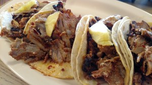 This is what I eat at a taqueria and it makes the playing field very level. Frequently, this grouping of taquerias is confused as a “Best Mexican Food” list. It is NOT a ‘Best Mexican Food’ list. It is a TACO LIST, period. Secondly, NOTHING BUT THE FOOD is reflected in the score–this is quite the opposite of my regular restaurant scoring. Cleanliness, Ambiance, Service, Price, Presentation, Communication, ALL ARE IGNORED in the judging of a taqueria. I don’t care if cockroaches are falling off the ceiling, blaring music and TVs or has 10,000 bad YELPs about how rude they are or how sick you got or how there’s nothing vegetarian on the menu. The only things considered are meat quality and preparation, tortilla source and texture and warming, sauces or salsa. Nothing else matters. I should add there are three basic methods of preparing “Tacos al Pastor” in a restaurant environment, and which method is used will play hard into the rating: