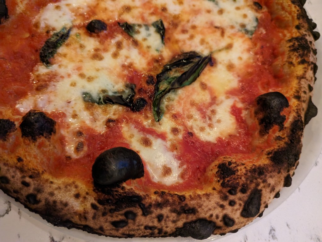 Pretty sure Flour House makes the best Margherita in the county. Sat at the bar the other night during the deluge watching the rest of the street black out and pounded one. No, it’s not burnt. Those black bubbles are cotton-candy soft. Wait til you see the Neapolitan Ice Cream Cake with Spumoni. Had GIUSEPPE’S Margherita yesterday and can confirm: Flour House is better. My ranking in town RN: