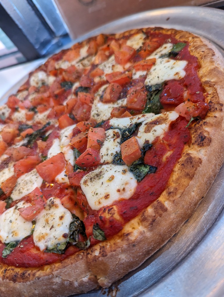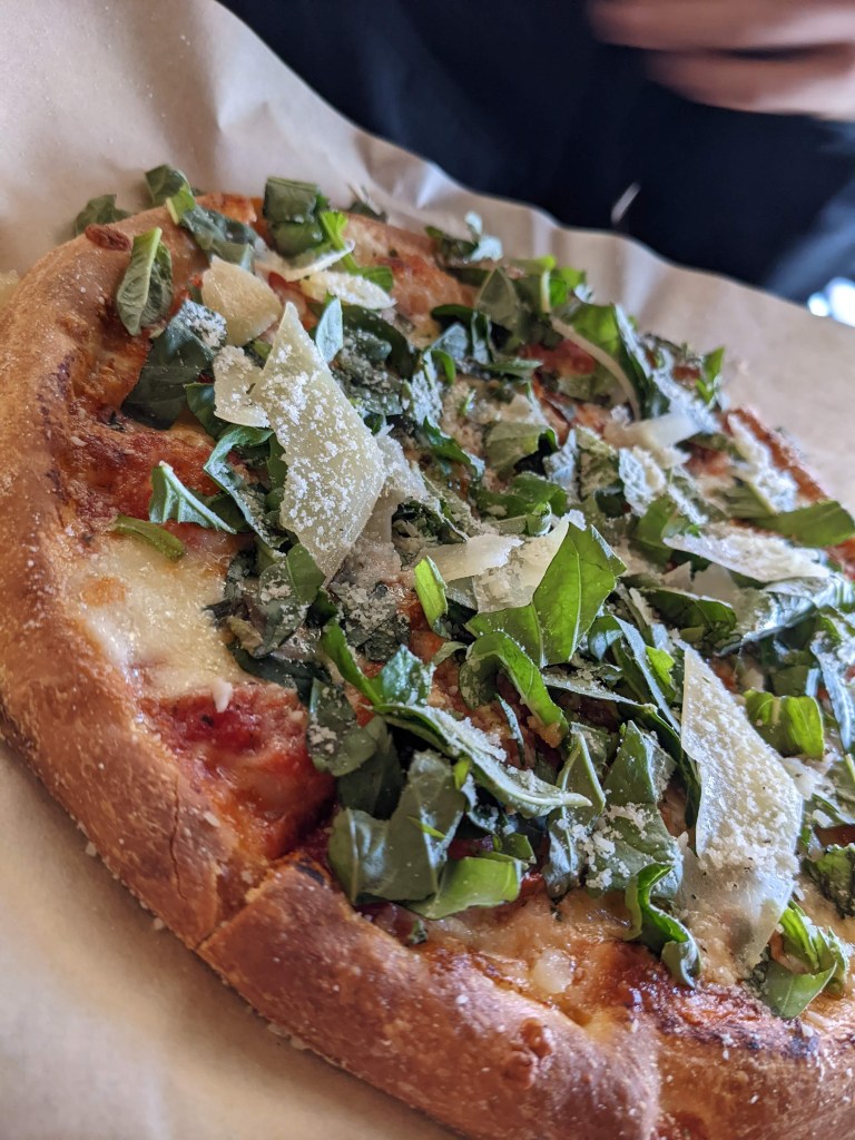 8. GRAPE LEAF DELI in the most-unlikely spot for wood-fired marg: in a middle-eastern restaurant but there it is. Rather nicely done and GUARANTEED 100% handmade EVERYTHING. Hell, he probably even makes his own mozzy. Gotta eat it outdoors, though, and prepare to be shouted at. PRO TIP: order it and take it over to Legends across the street–as they will allow ANY food inside.