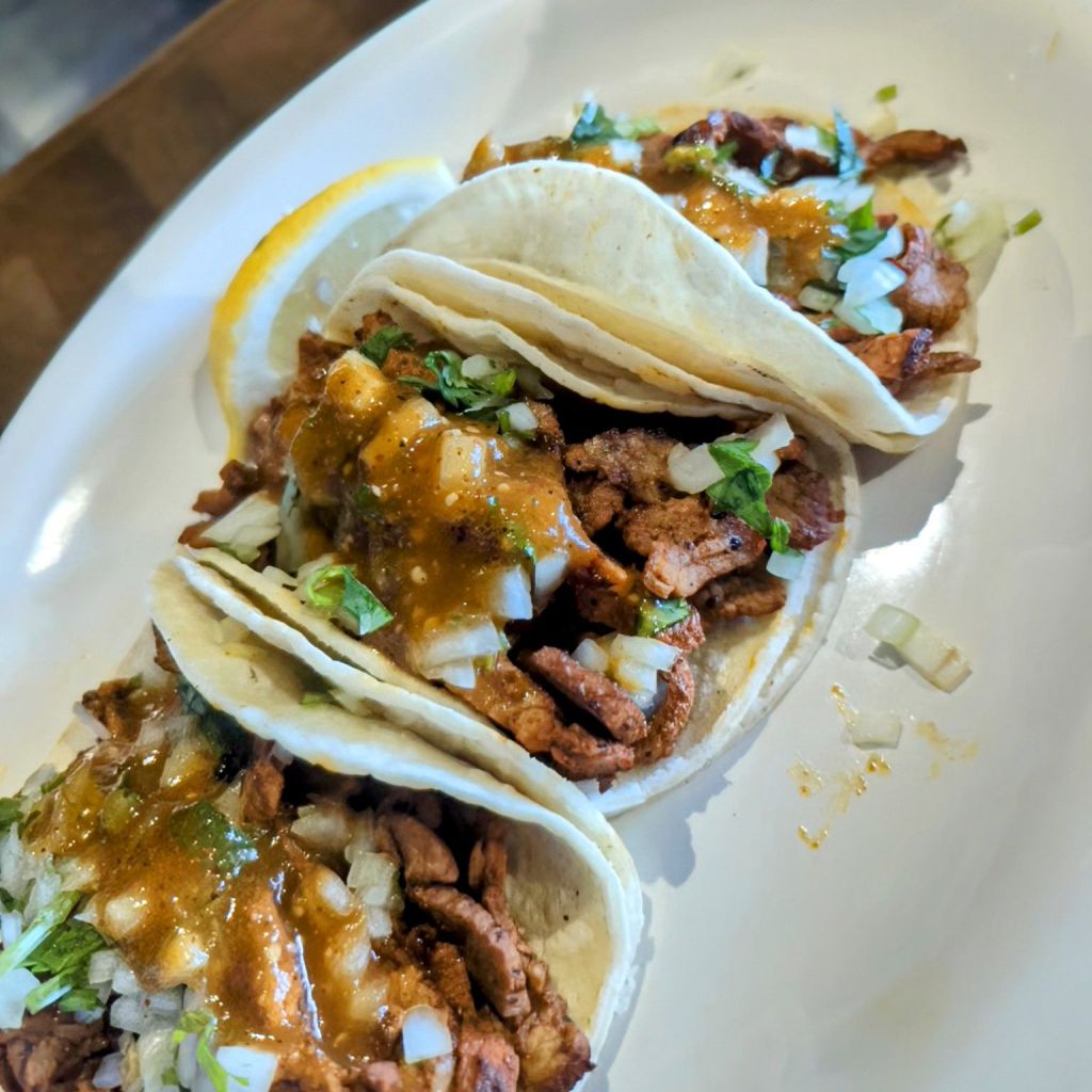The little taco-truck always in front of the Rexall in Los Osos has opened in the former Round Table in AG. HANNA’S MEXICAN FUSION is an extension of HANNA’S STREET TACOS and it’s pretty good. So let’s do the count, CCW from Oak Park: Guerrero, Parilla, Hanna’s, and El Guero’s truck LITERALLY all within sight of each other in one block. TAQUERIA GUERRERO hands-down the best, and the other three in a dead heat of VERY VERY GOOD slightly-second-place. They all make *basically* the same taco, with Guerrero getting the nod for rotisserie, salsa selection, consistency, vibe and demographic. The last item playing FAR more into the equation than I feel comfortable admitting.